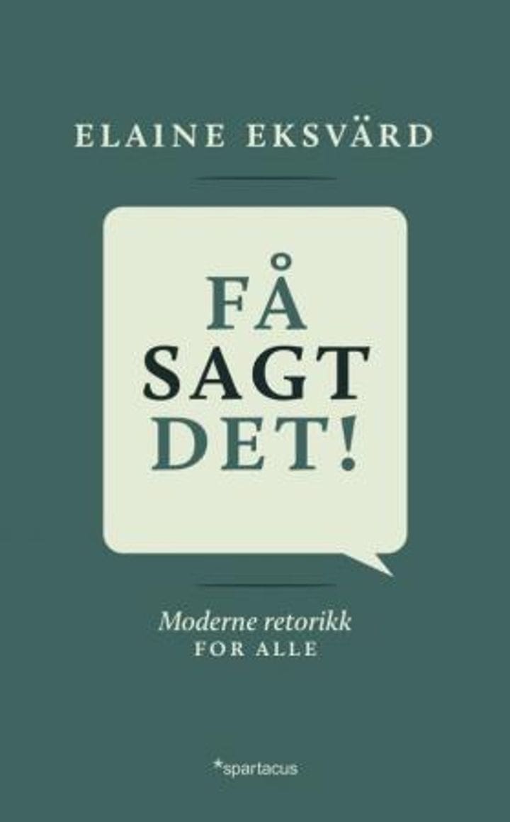 Retorikk er ikke kunsten å tale, men kunsten å få folk til å lytte. Det er mulig å lære seg teknikker som både gir deg gjennomslag for det du står for og som får folk til å like deg bedre. I denne boka tar Elaine Eksvärd retorikken ned fra talerstolen og inn i hverdagen. Hvordan sier man noe vanskelig på en god måte? Hvordan lykkes du best i lønnsforhandlinger? Og hvilke farger påvirker reptilhjernen? Få sagt det! tar opp konversasjonsteknikker, lærer deg å gjennomskue floskler og gjør deg bevisst makten som ligger i retoriske grep, enten de benyttes i en hverdagssamtale, en internettblogg eller en viktig presentasjon på jobben. «Den som følger Elaines råd i boken kan nesten ikke unngå å bli en god taler og stimulerende samtalepartner.» Lennart Hellspong