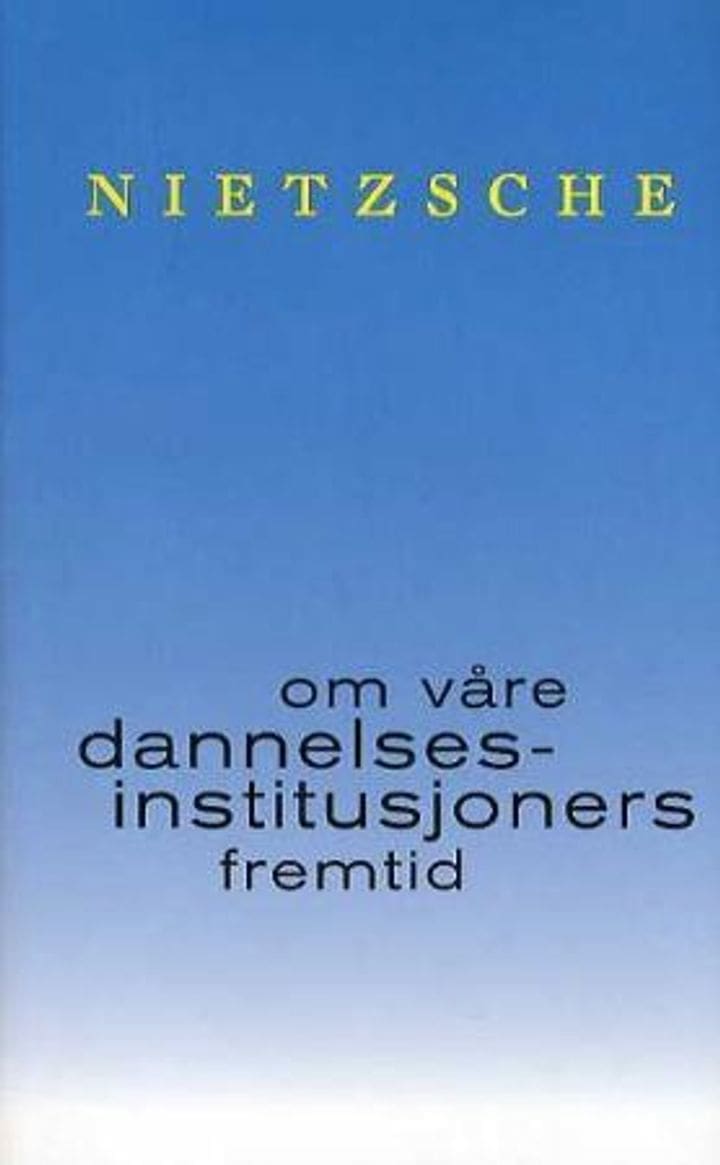 Vinteren 1872 holder den 26 år gamle Friedrich Nietzsche fem foredrag i det «Frivillige akademiske samfunn» i Basel, om de tyske dannelsesinstitusjonenes fremtid. Men den vitenskapelige utlegningen uteblir, i stedet tilbyr Nietzsche sitt publikum en fortelling som mest minner om en roman eller et drama, hvor han advarer om tidens dannelsesnød og besverger en kommende revolusjon av dannelsesvesenet. Det som begynner som en dannelseskritikk, først av gymnaset, så av universitetet, går snart over i en bredt anlagt kultur- og ideologikritikk. Samtidens lærere, journalister, forfattere og kunstnere får unngjelde for sitt forræderi mot den «sanne» dannelsen. Bak dette dannelsesfernisset lar den unge Nietzsche staten komme til syne – det samlede Tyskland, gjenfødt til storhet i 1871 og nå i jernkanslerens klør – som har lenket dannelsen og kulturen til sine politiske stormaktsdrømmer.